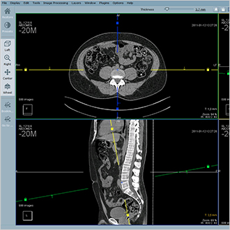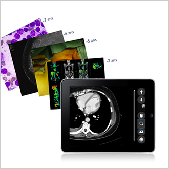 Permet de compresser, de sécuriser, de stocker et de visualiser des images radiographiques à l'aide d'outils d'affichage et de visualisation de pointe (zoom, loupe, annotations, mesure de distances, suivi des mesures, etc.). L'utilisateur peut visualiser simultanément des images coronarographiques, PET et de médecine nucléaire, ainsi que des images d'imagerie plus classiques (IRM, scanner, échographie, etc.). L'utilisation d'étiquettes associées aux examens vous permet de créer des groupes d'examens et d'y accéder en un seul clic. Un système de recherche personnalisé vous permet d'accéder très rapidement au dossier du patient ou à l'examen souhaité. L'affichage est optimisé pour permettre un affichage multi-écrans, ainsi que l'intégration des logiciels RIS et PACS installés sur les mêmes postes de diagnostic.
