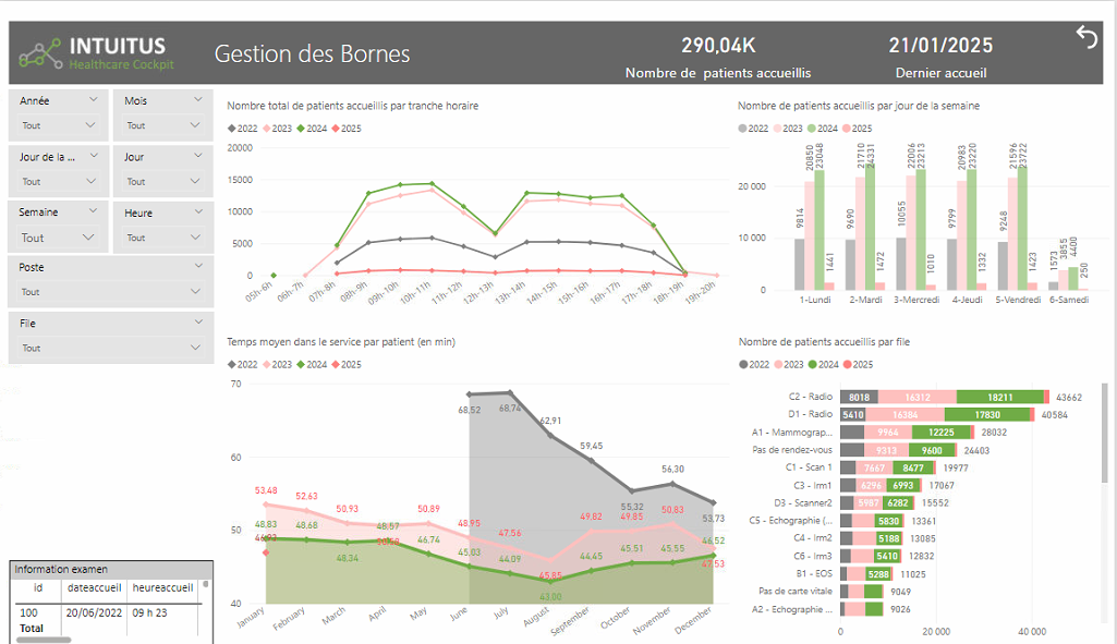 In practice, INTUITUS can now predict laboratory or radiology department activity months in advance. It also sheds light on observed phenomena, such as extended waiting times in reception areas, by identifying contributing factors such as equipment type, human resource availability, or fluctuations by time of day and week.